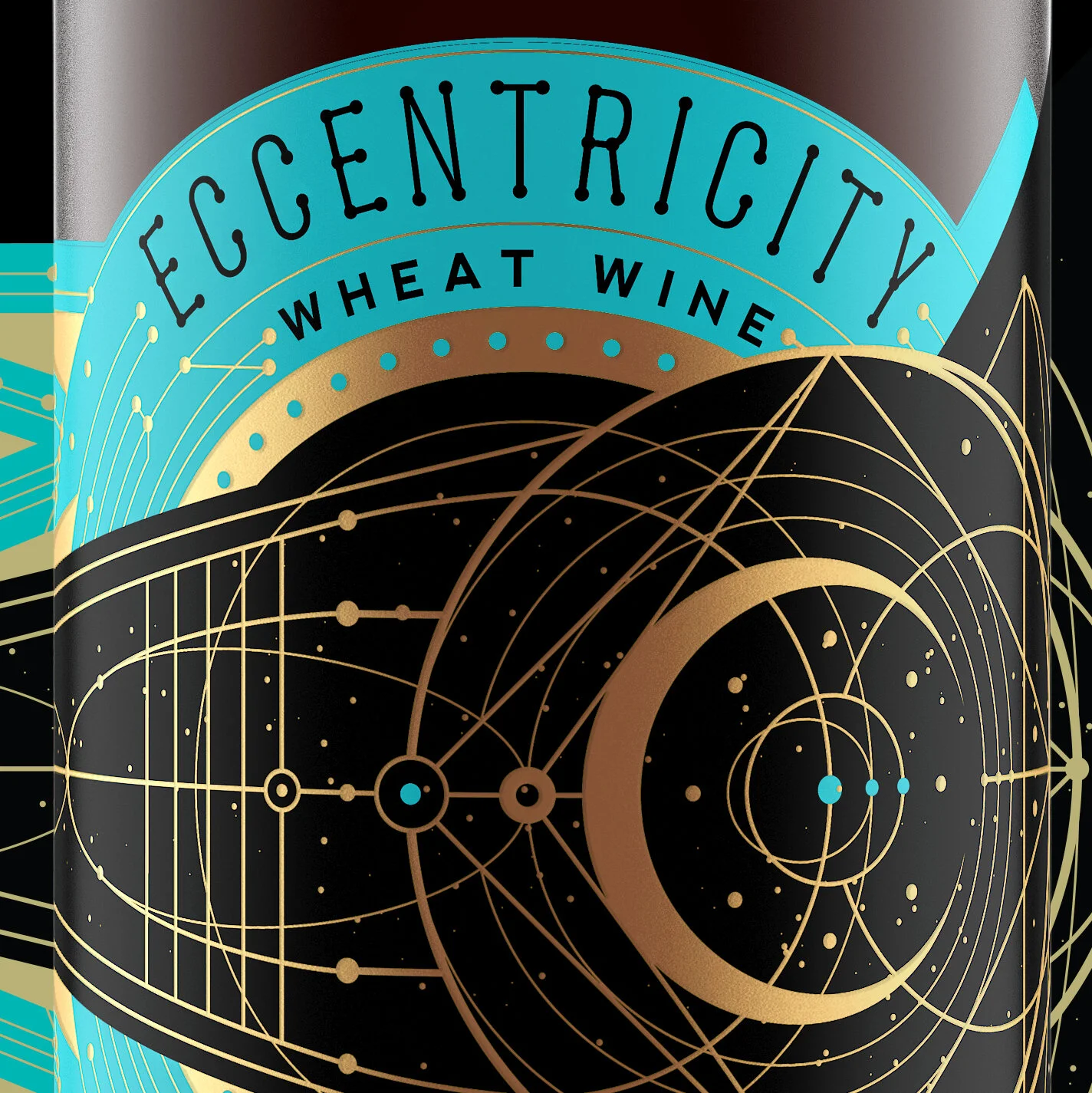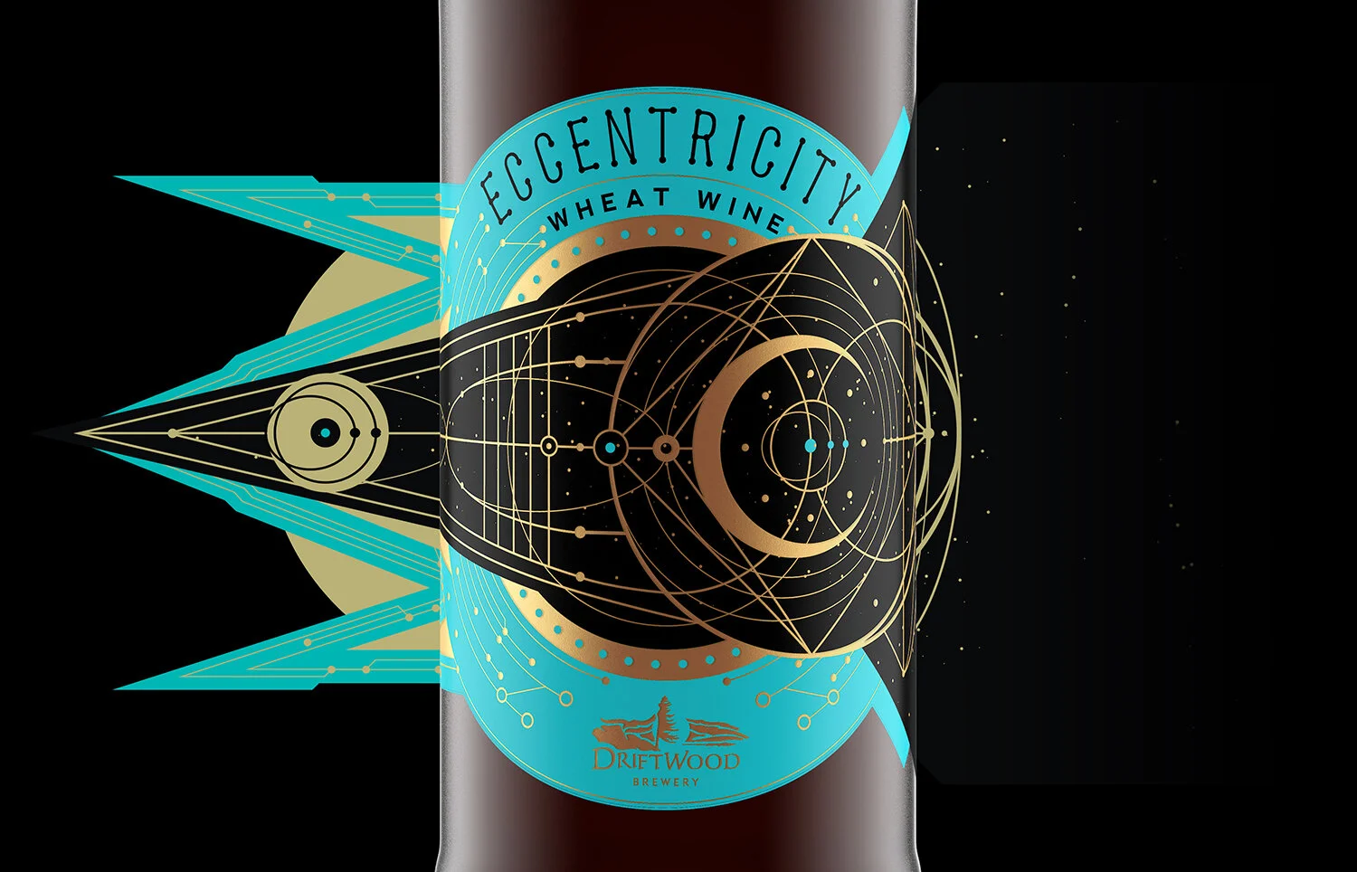 Driftwood Brewery’s highly cellar-able Eccentricity Wheat Wine is the perfect time capsule to send to your future self. For the label design we have crafted a streamlined, glyphic map of the cosmos and a custom typeface built from nodes and lines like constellations.